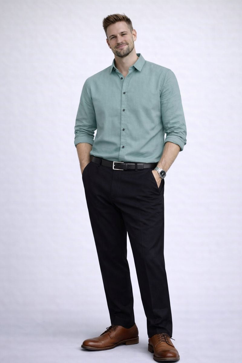 Finished with a classic collar and full sleeves, this shirt delivers a balanced look that works effortlessly for casual settings, workwear, and elevated
