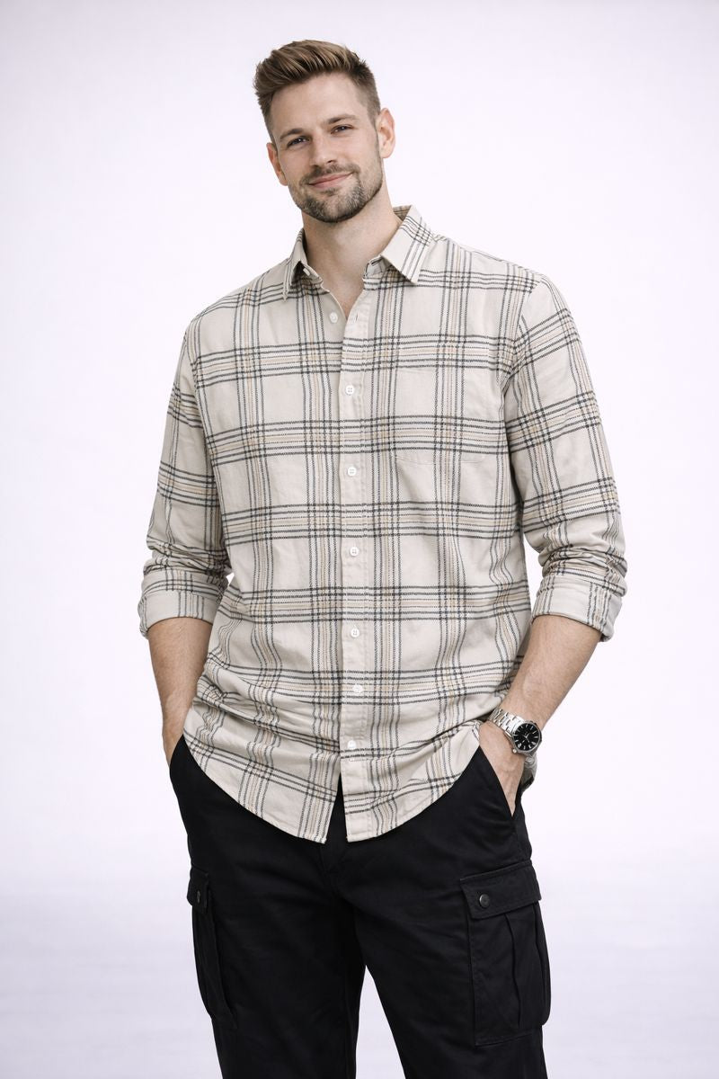 Finished with a classic collar and full sleeves, this shirt delivers a balanced look that works effortlessly for casual settings, workwear, and elevated